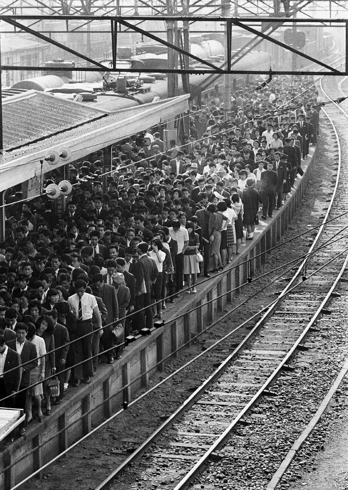 満員の乗客を乗せた電車が到着するたびに、この様な光景が見られた様です。