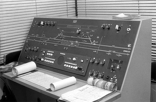 この当時は中山止まりの電車も多く 行先表示の変更は駅員の役目で旧型の板サボや 旧型および103系の手動での行先変更や電動サボの行先変更も経験しました。 しかしCTC駅装置の写真撮影をしなかった事を深く後悔&反省しています。 確か1回だけ助役さんがこの装置を手動に切替えて操作していたのを 見たことがありました。 (しかし何故、手動に切替えて操作したかは思い出せません) |