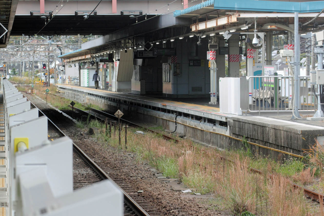 ■撮影 2025/12/03 5両の停止位置目標は、中線の東神奈川寄りのみに設置されています。 |