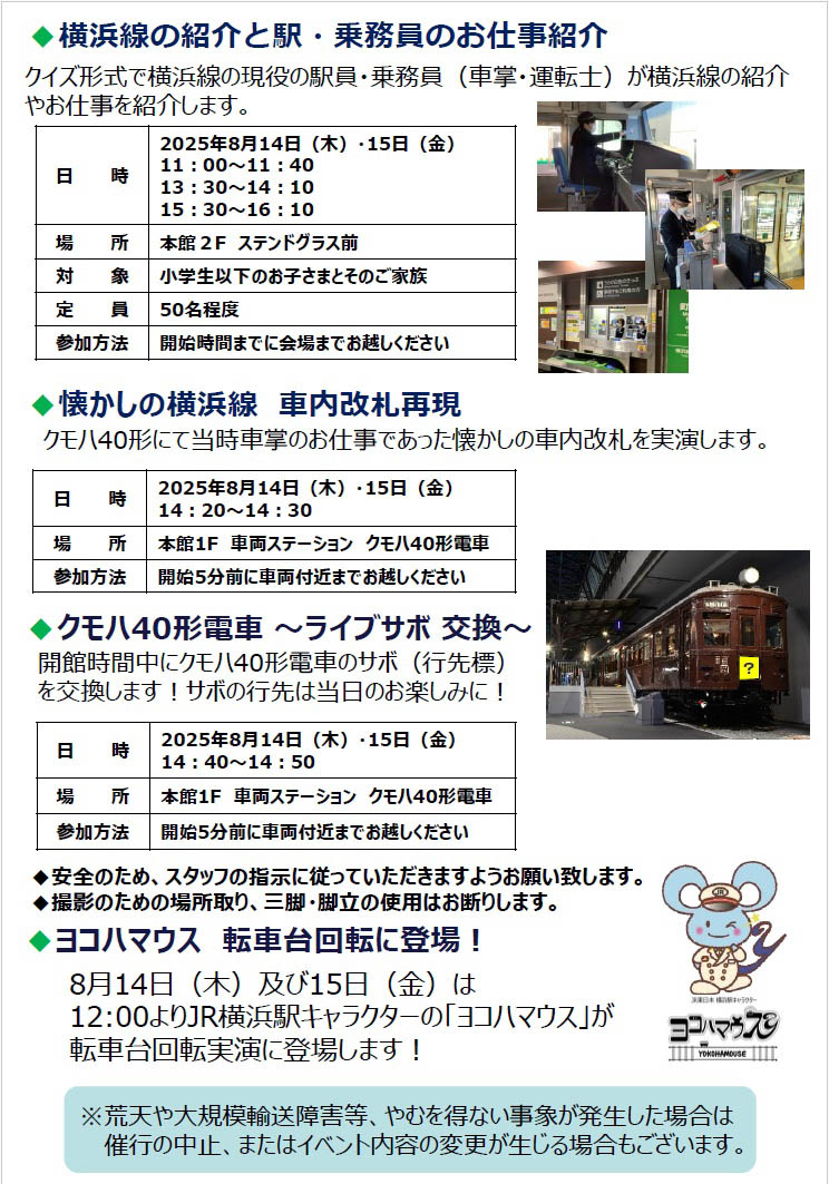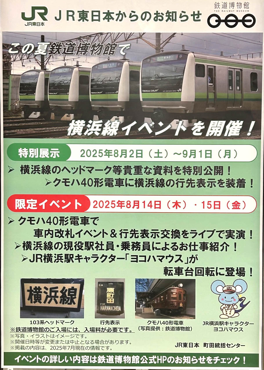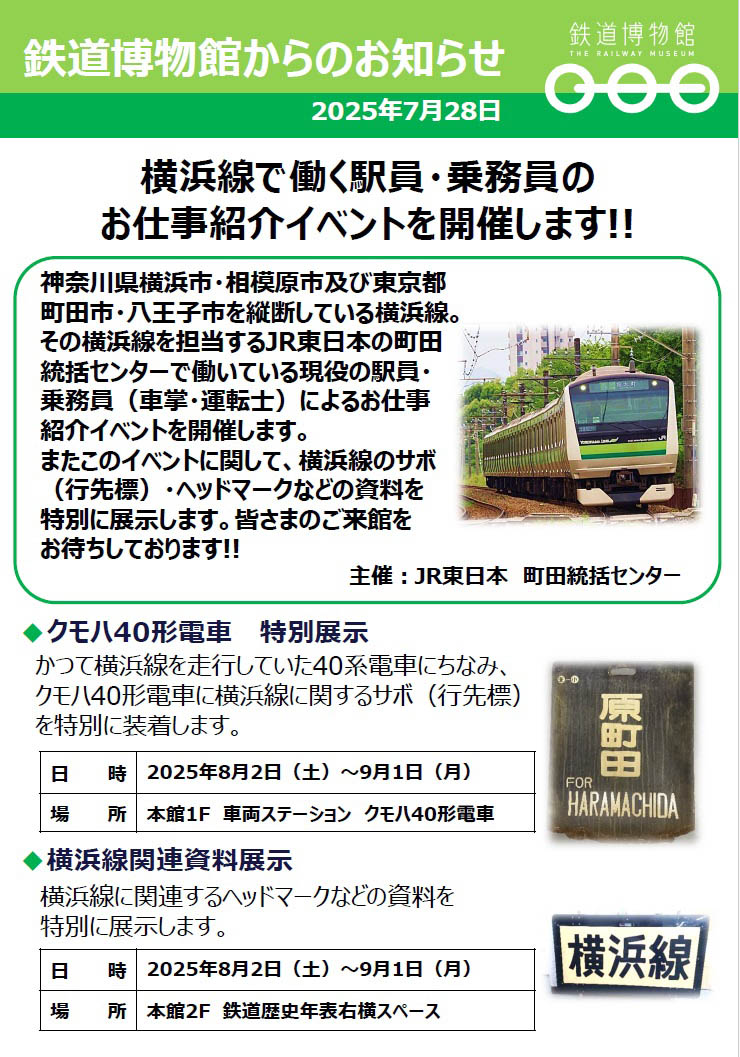 | ■鉄道博物館にて「横浜線で働く駅員・乗務員のお仕事紹介イベント」開催 2025/08/11発 | |||||||||||||||||||||