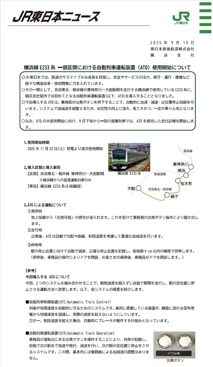 | ■横浜線E233系自動列車運転装置(ATO)の使用開始について 2025/09/19発 2025/11/23更新 | |||||||||||||||||||||